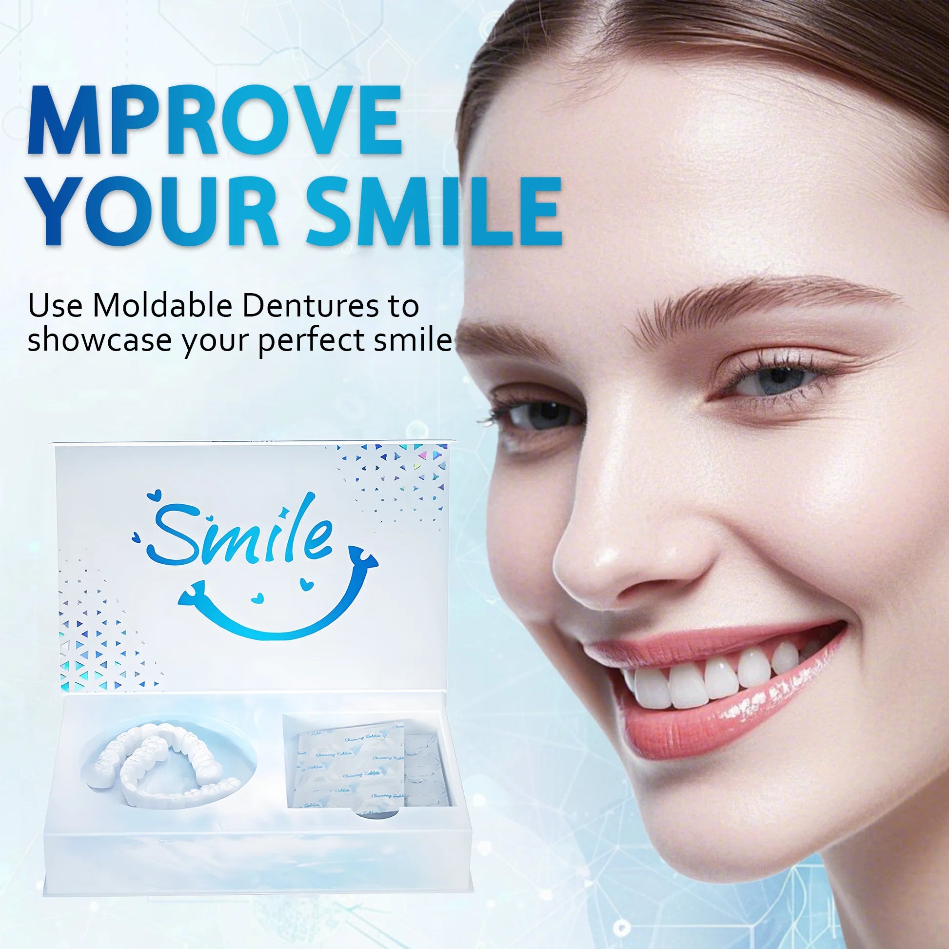Do you often feel self-conscious about your smile or your imperfect teeth? There's no need to visit a dentist for a costly fix! With the Moldable Dentures. you can achieve the flawless. picture-perfect smile you've always dreamed of. all without breaking the bank.