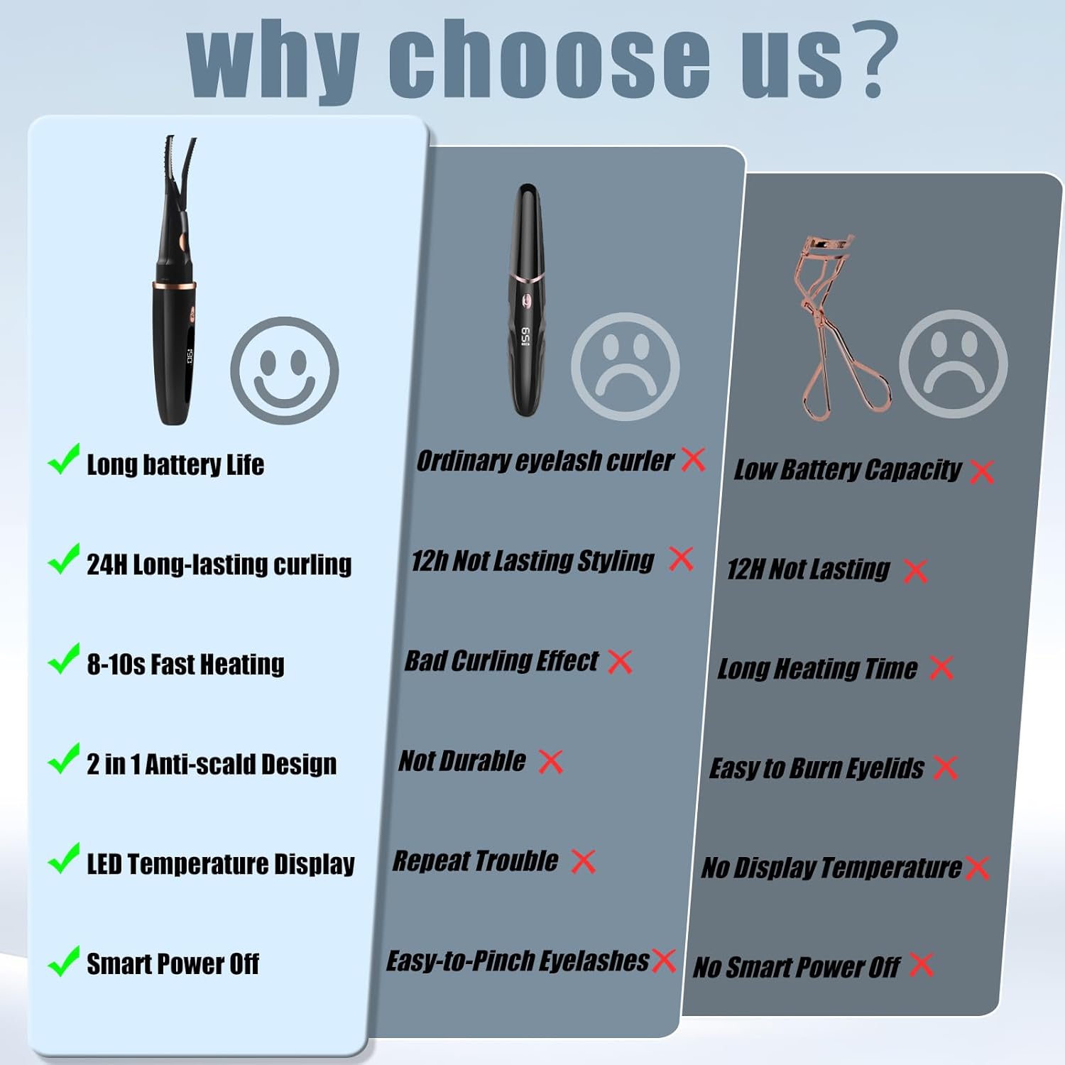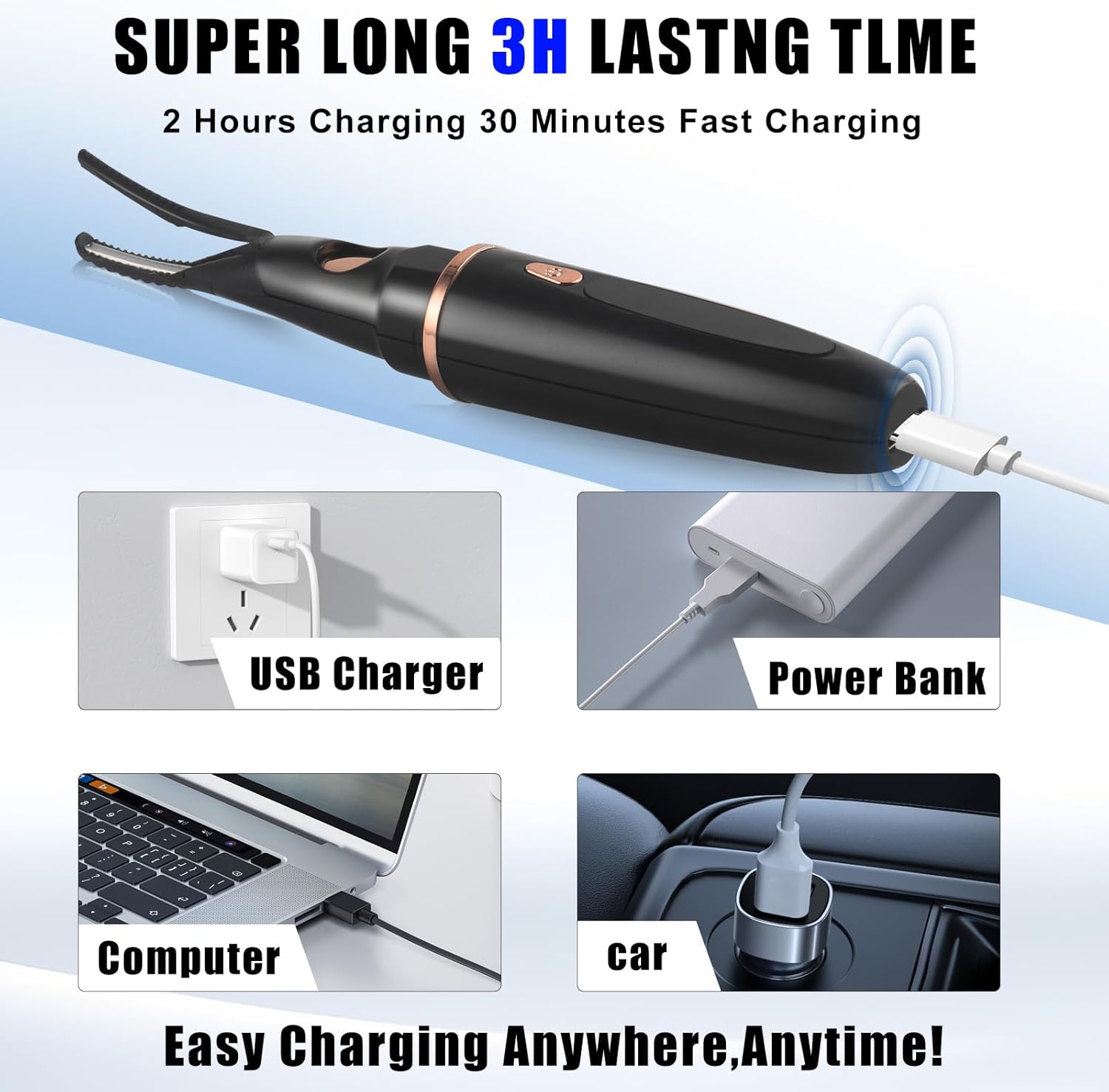 - 【Usage Tips】🔋 First Use: Fully charge for 1-2 hours. Practice the operation technique before formal use. ✨ Curling Hack: Lightly apply mascara before curling to boost heat setting. Reapply after curling for a natural, long-lasting lift