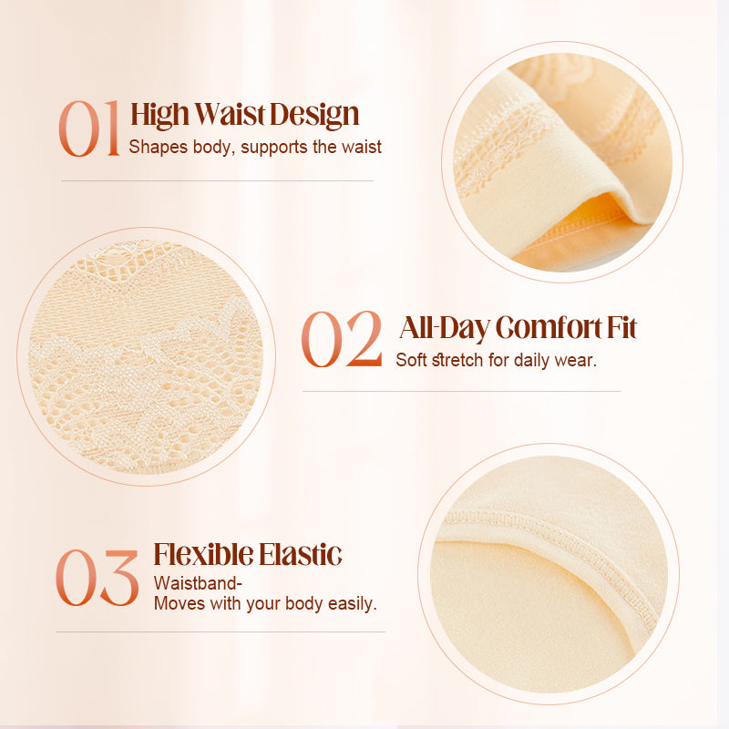 FULL COVERAGE SUPPORT Confidence-boosting fit for daily wear. Designed for fuller figures, these high waisted panties offer excellent tummy support and coverage. The extended rise helps smooth your midsection while staying securely in place¡ªmaking them ideal for both comfort and shaping throughout the day.