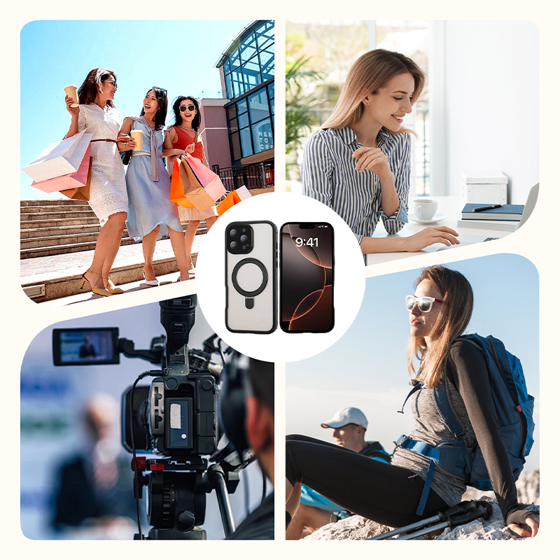 BUILT-IN STAND FOR HANDS-FREE VIEWING -Features a sleek, foldable kickstand on the back that props your phone at the perfect angle—ideal for video calls, streaming, or browsing without holding your device.