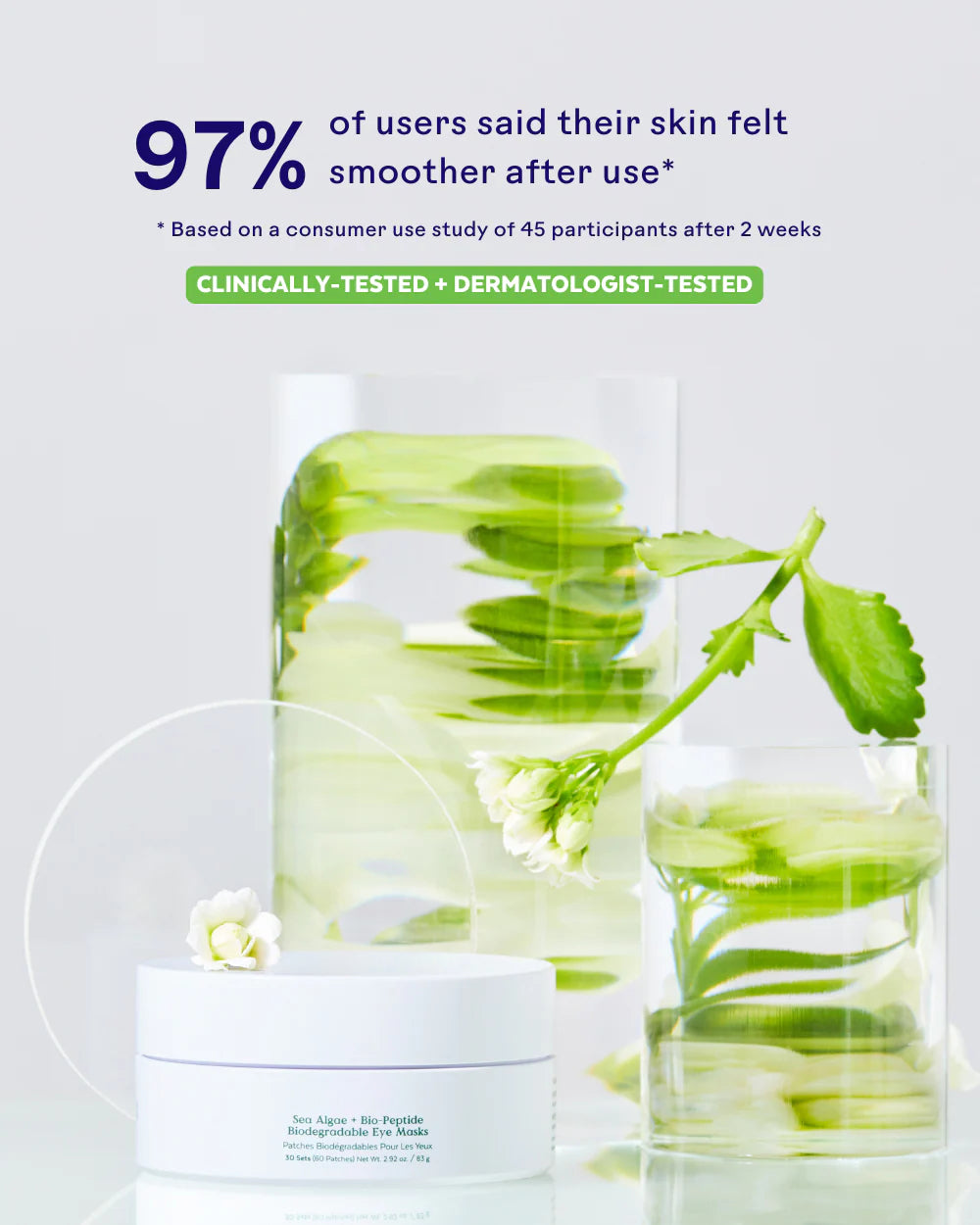 🟩 Sea Algae + Bio-Peptide Smoothing Biodegradable Eye Masks:Visibly smoothes and firms your under-eye area, reduces the appearance of fine lines, and locks in moisture for a refreshed look.