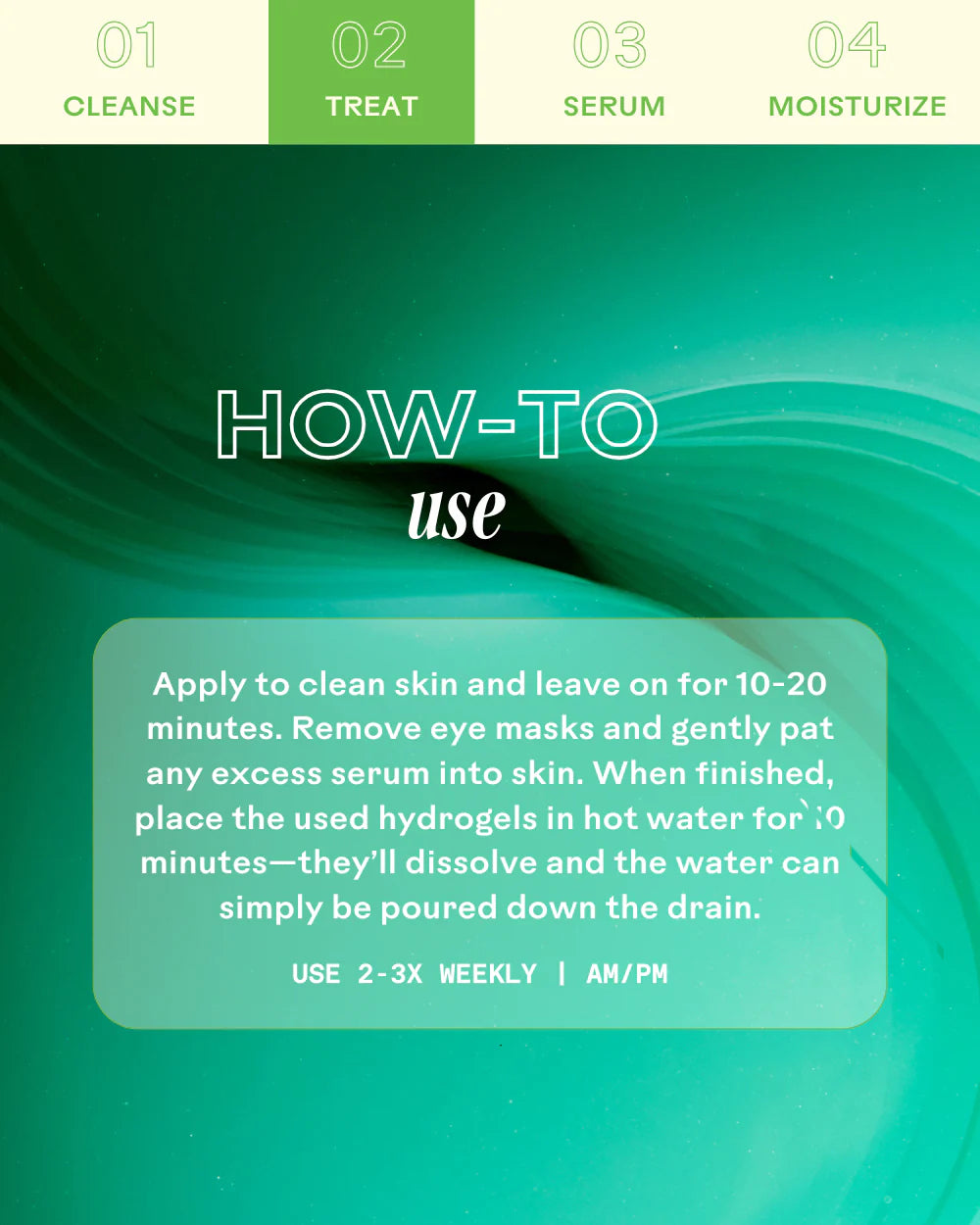🪄HOW TO USE: Apply to Clean Skin & Leave on for 10-20 Minutes. Remove Eye Mask & Gently Pat Excess Serum. Place Used Hydrogels into Hot Water for 10 Minutes to Dissolve; Water Can be Poured Down Drain