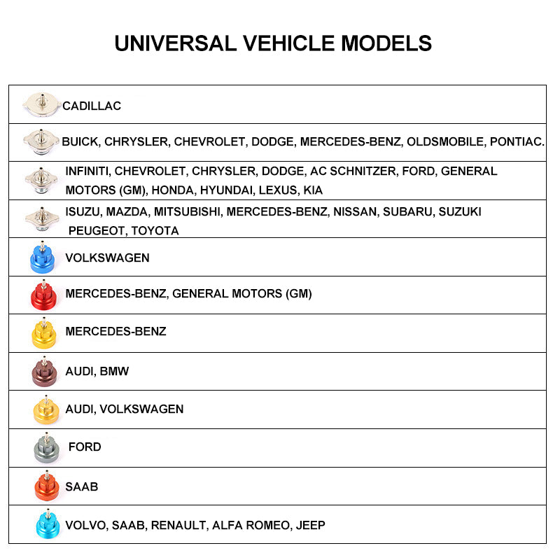 Ensure your vehicle's cooling system stays in top condition with our Universal Radiator Coolant Pressure Leakeage Tester Kit. This comprehensive set is designed to help you quickly and accurately detect leaks in your radiator, coolant system, and more.