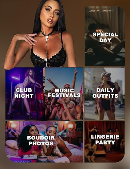 This sexy lingerie set features a captivating choker and sparkling chain for a visually and tactilely stimulating experience.